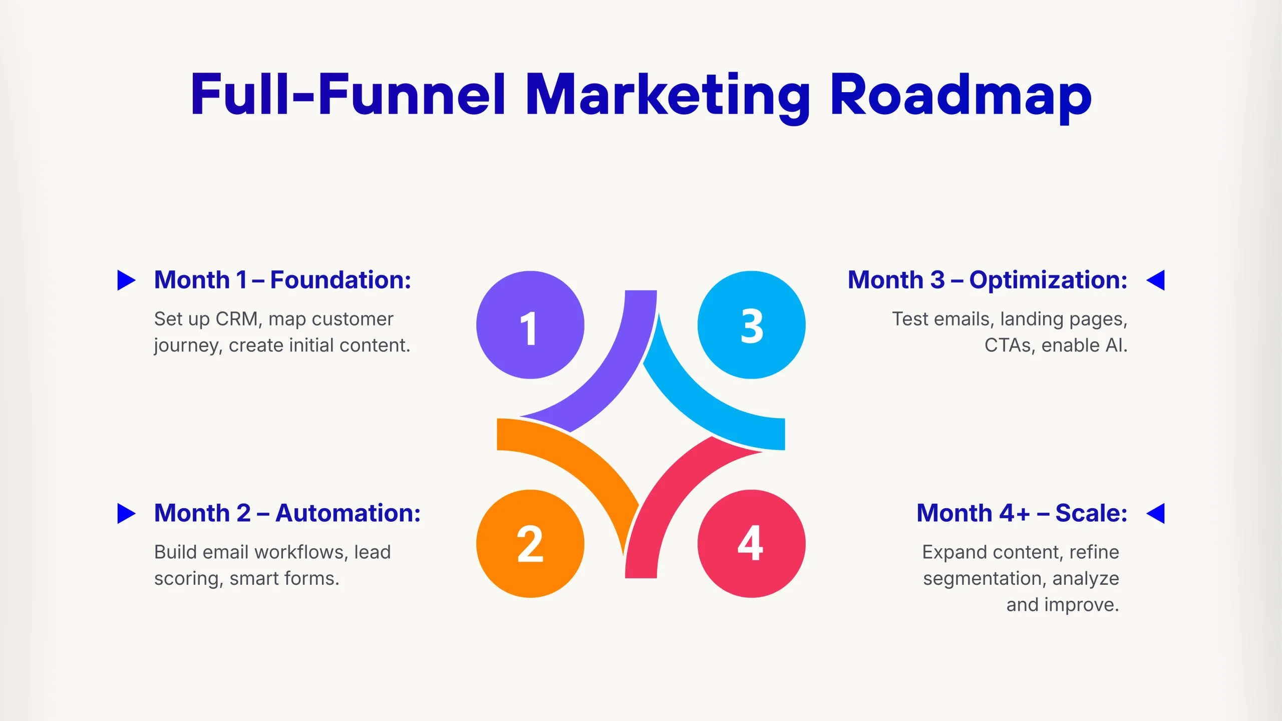 Most businesses see initial improvements within 60-90 days of implementing HubSpot marketing automation, but building a truly optimized funnel typically takes 6-12 months. Early wins often come from better lead nurturing and follow-up, while long-term gains come from content creation and SEO efforts maturing.