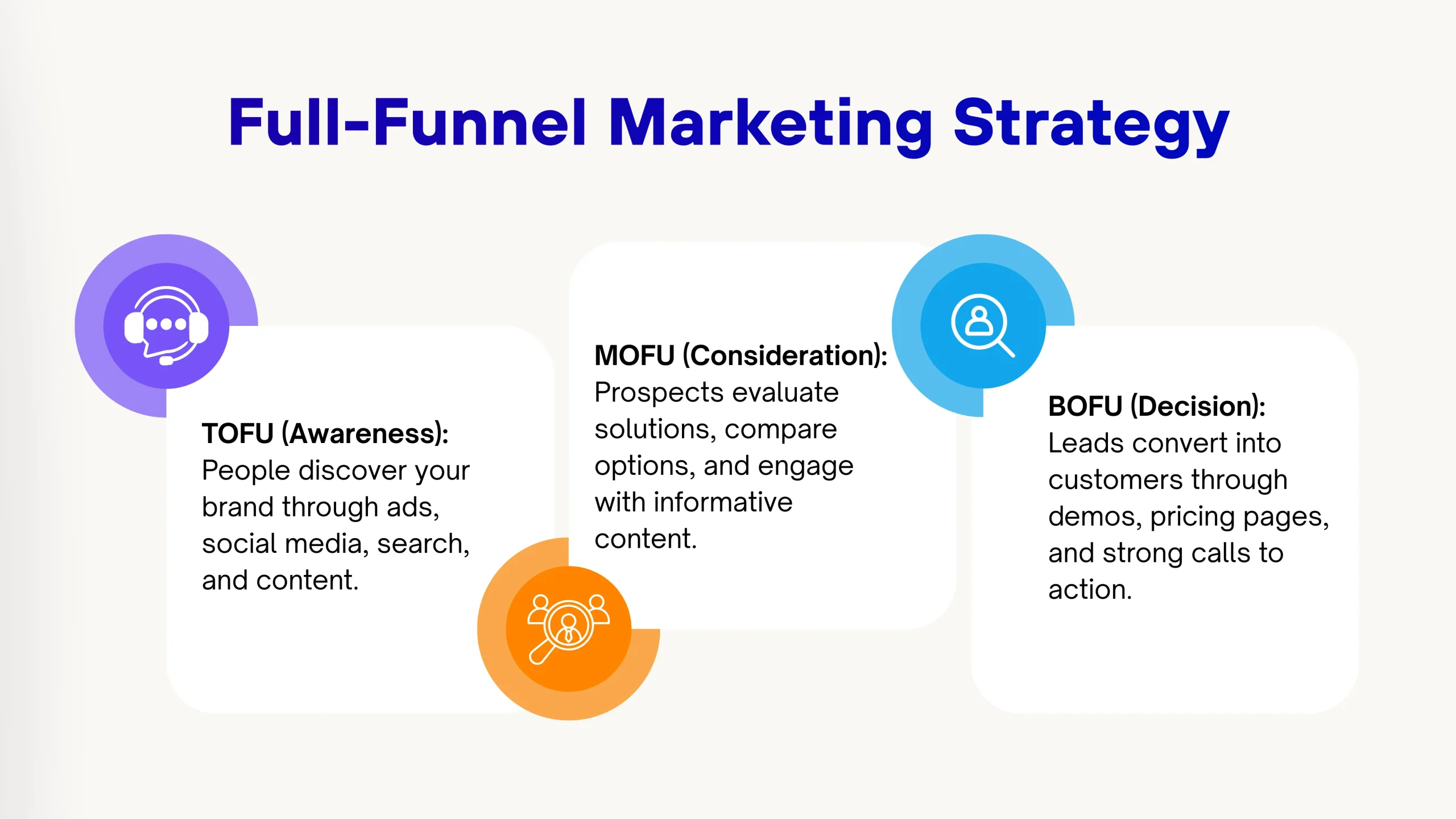 Inbound marketing focuses primarily on attracting and converting leads through valuable content. Full-funnel marketing campaign strategies extend beyond conversion to include customer retention, expansion, and advocacy. Think of inbound marketing as a key component within a broader full-funnel approach.